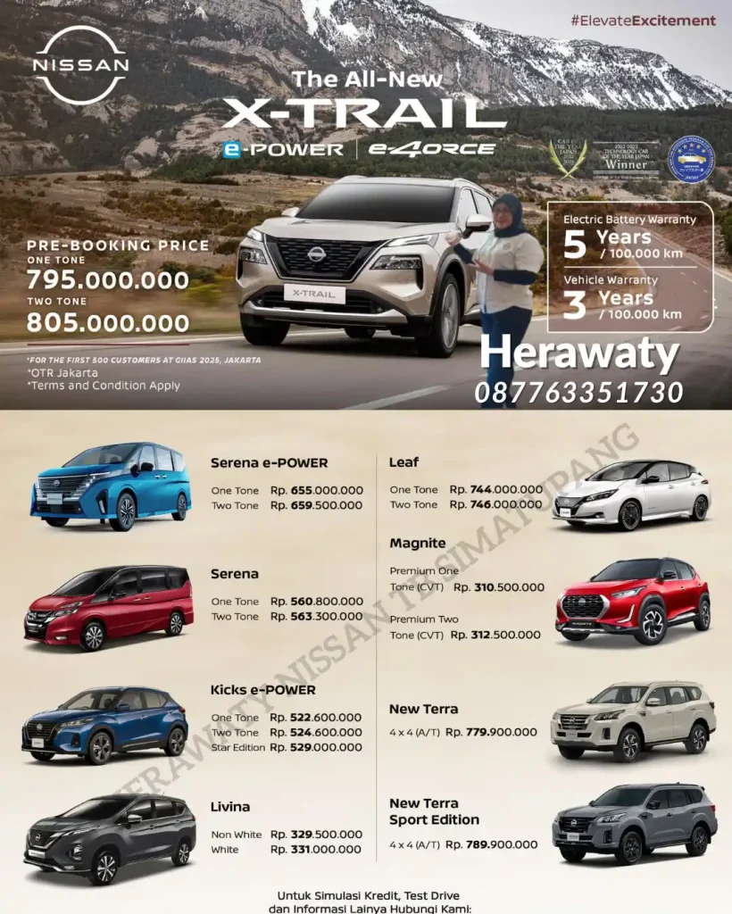 Pengalaman membeli mobil di Nissan Jakarta Selatan benar-benar luar biasa, dan ini semua berkat Mbak Herawaty! Awalnya saya bingung memilih MPV untuk keluarga, tapi Mbak Herawaty sangat informatif dan sabar menjelaskan semua keunggulan Livina, terutama ruang kabin yang luas dan kenyamanan saat handling di kemacetan Jakarta. Beliau tidak hanya fokus menjual